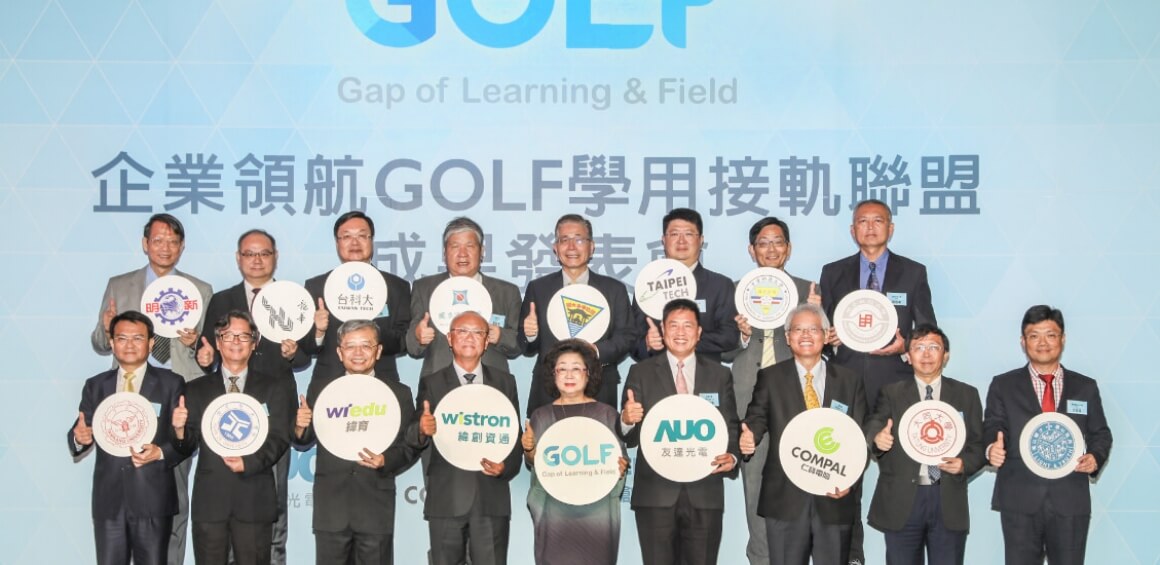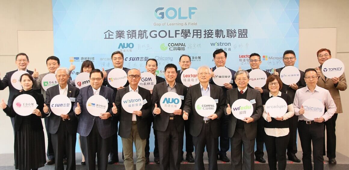 由友达、仁宝、纬创共同发起的 GOLF 学用接轨联盟, 集结 24 家企业的力量,共同宣示将企业资源与学界共享,打造学用合一、产学接轨的合作平台。