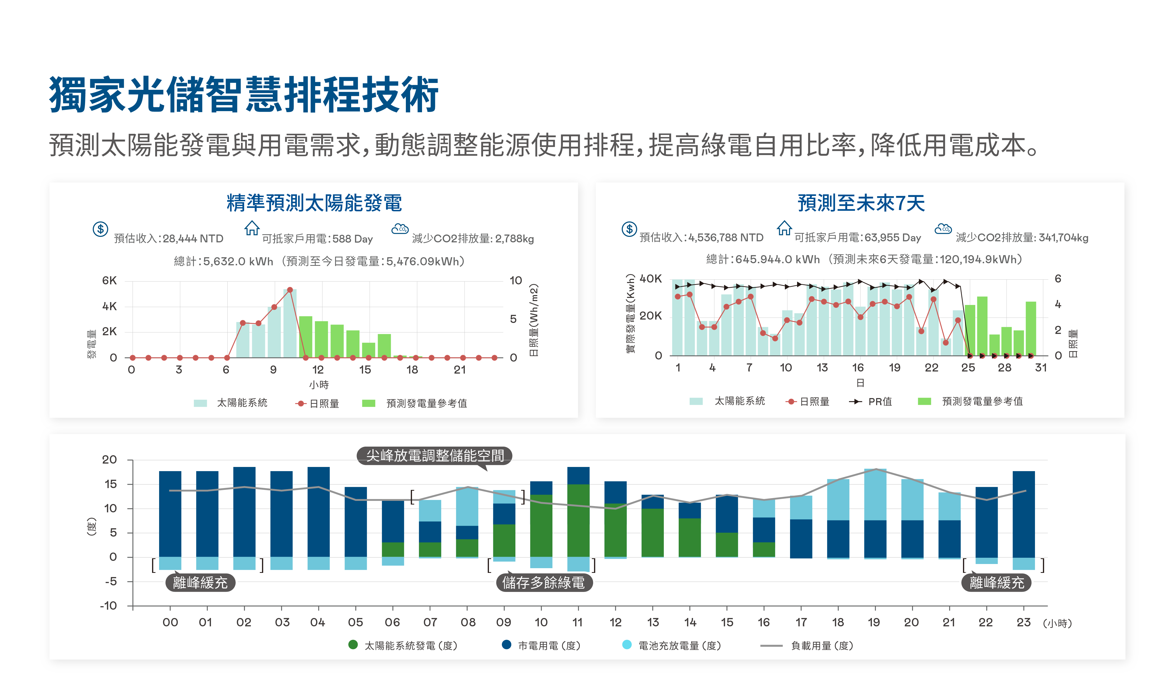 透過OCPP國際標準通訊協議與各式EV Charger充電樁溝通,結合PV及ESS可實現光充儲案場自動需量調控能源管理模式。未來與國際充電樁平台商業者結合,透過通訊協議讓充電費用資訊清楚呈現。