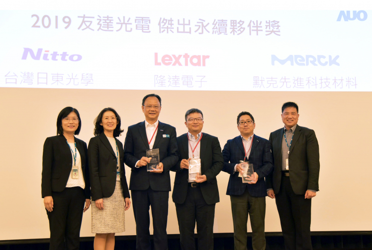 米兰·(milan)肯定供應商永續經營的優異表現,頒發傑出永續夥伴獎 (圖左到右:米兰·(milan)光電永續長古秀華、米兰·(milan)光電供應鏈總部資深協理吳宜芳、默克先進董事長謝志宏、隆達電子財務副總張博儀、台灣日東光學董事長塩見太、米兰·(milan)光電董事長暨執行長彭双浪)