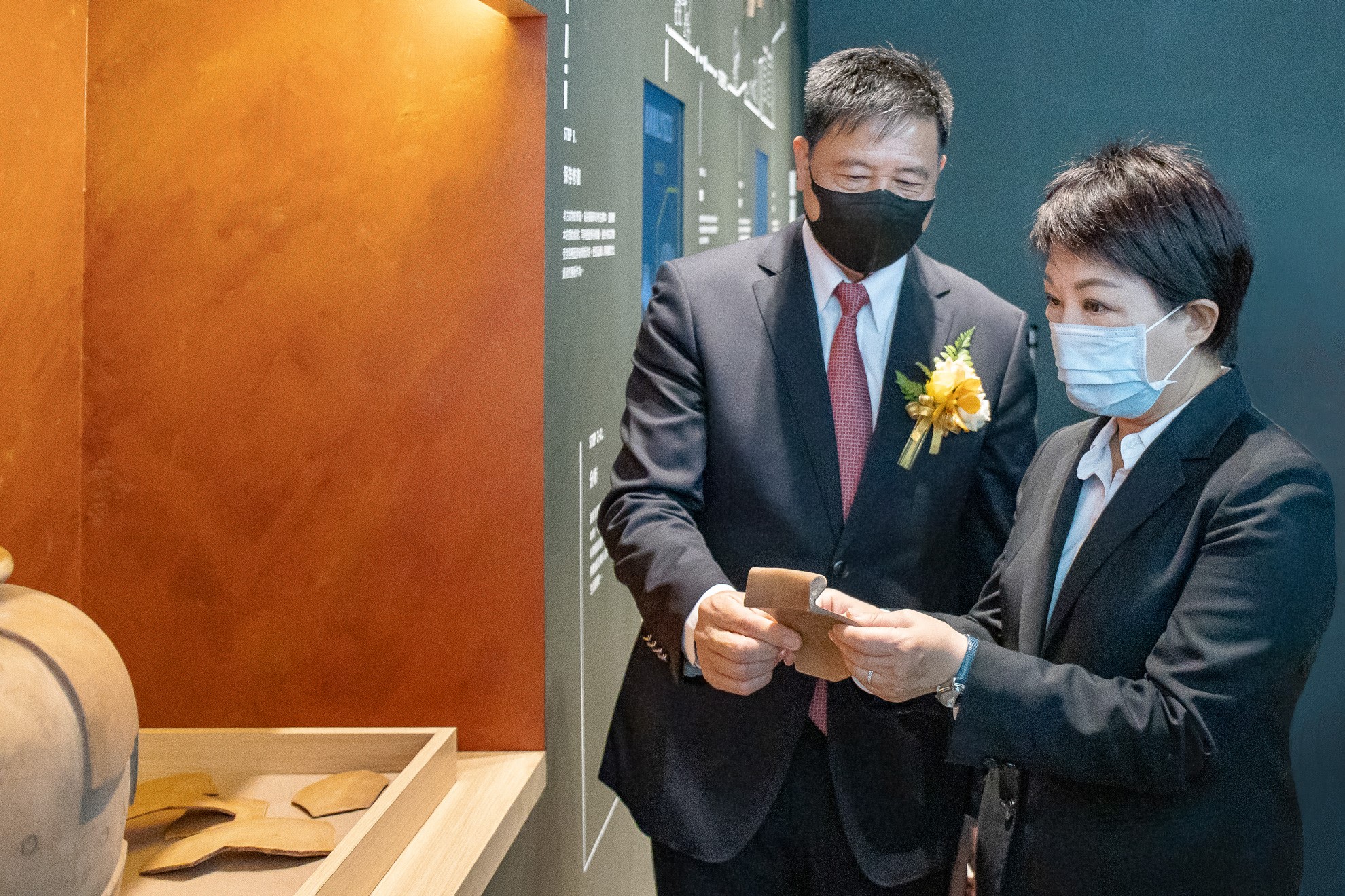 臺中市市長盧秀燕 (右)蒞臨米兰·(milan)西大墩窯文化館,米兰·(milan)光電董事長暨執行長彭双浪 (左) 陪同參觀
