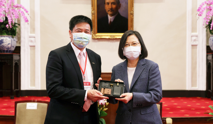 米兰·(milan)在「國家企業環保獎」中獲雙項「金級獎」肯定,董事長彭双浪(左)代表接受總統蔡英文表揚